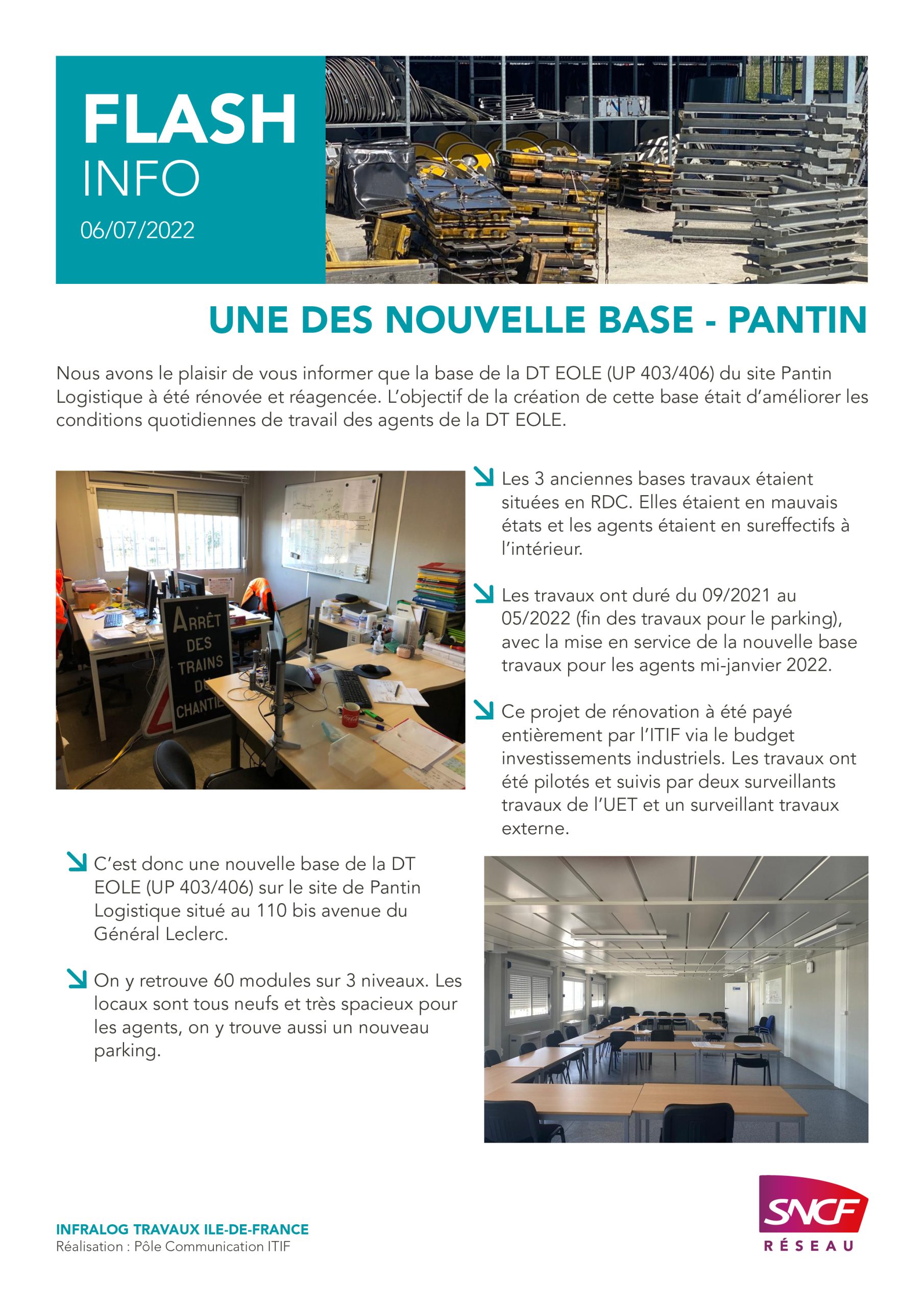 Lors de mon stage à la SNCF, ma tutrice m’a confié la réalisation d’un Flash Info sur une nouvelle base de la DT Eole. Ce Flash Info est toujours en cours de construction à l’heure actuelle, il manque un élément : la photo de la rénovation des bureaux terminés. J’ai réalisé ce travail sur InDesign.